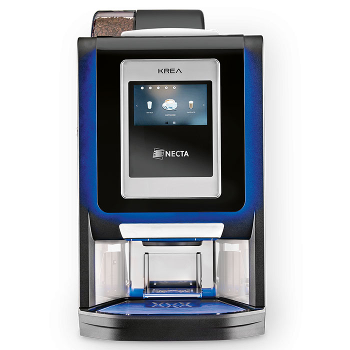 Vending aparat za kafu NECTA Krea Touch je sofisticiran uređaj sa 7-inčnim HD ekranom osetljivim na dodir i zaista je idealan za optimalnu pripremu visokokvalitetnih toplih napitaka. Opremljen je patentiranim Z4000 modulom za pripremu kafe i espreso bojlerom kapaciteta 600 cc.
